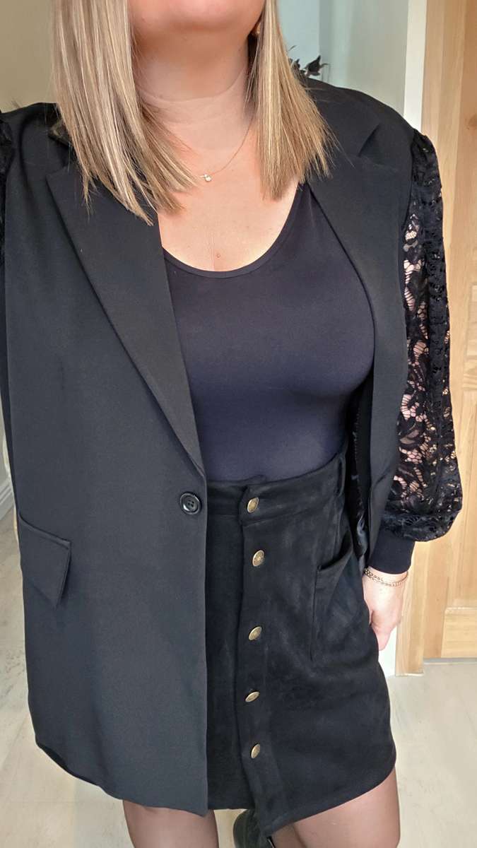 Emilie porte la T2XL pour une taille 46.